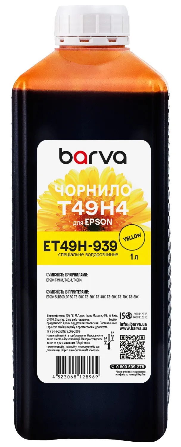 Чорнило для Epson T49H4 спеціальне 1 л, водорозчинне, жовте Barva (ET49H-939) опис: