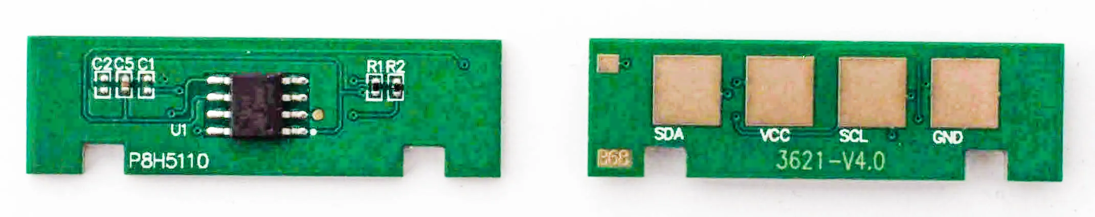 Чіп - це не велика за розміром мікросхема, в яку вшита інформація про ресурс самого картриджа, забезпечений функцією обміну даними з принтером. Простіше кажучи, завдяки чіпу апарат може порахувати кількість надрукованих сторінок. У момент, коли лічильник сторінок підійшов до кінця, ви побачите попередження про те, що картридж закінчився і його необхідно замінити, навіть якщо в бункері картриджа залишився невикористаний тонер.