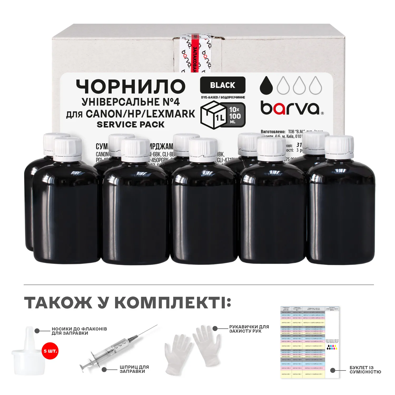 Чорнило для Canon/HP/Lexmark універсальне №4 10x100 мл, водорозчинне, чорне Service Pack Barva (CU4-1SP-B) опис: