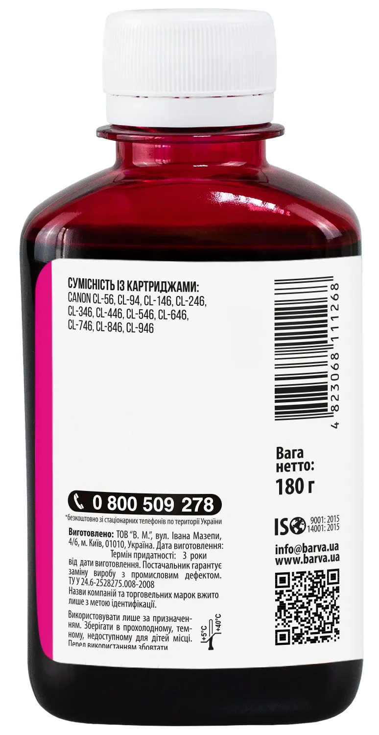 Дана фарба для принтера Canon Barva має фасовку – 180 мл: