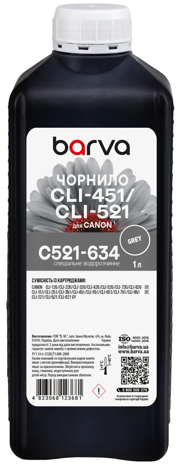 - Чорнило для Canon CLI-426/CLI-451/CLI-521 спеціальне 1 л, водорозчинне, сіре Barva (C521-634)
