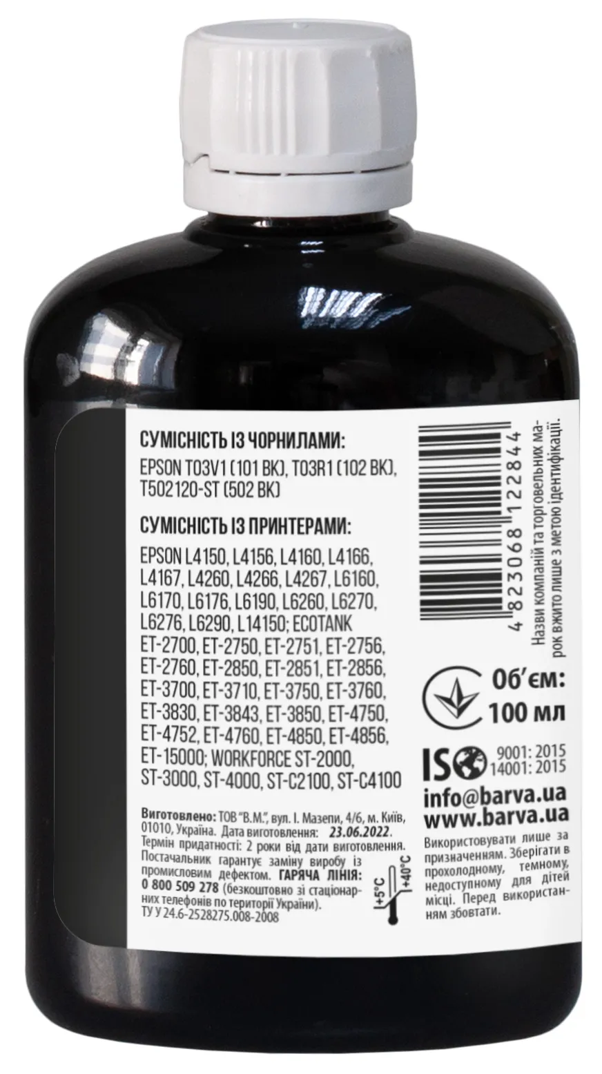 Чорнило сумісне для Epson 101 BK спеціальне 100 мл, пігментне, чорне Barva (E101-558) опис: