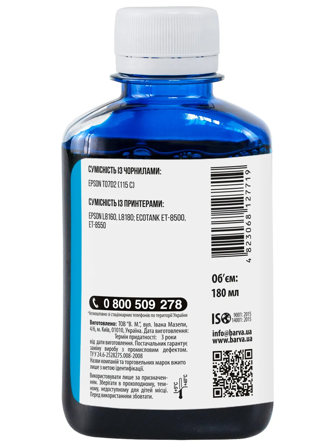 Дана фарба для принтера Epson Barva має фасовку – 180 мл: