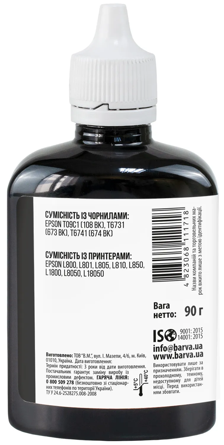 Чорнило сумісне для Epson 673 BK спеціальне 90 г, водорозчинне, чорне Barva (L800-408) опис: