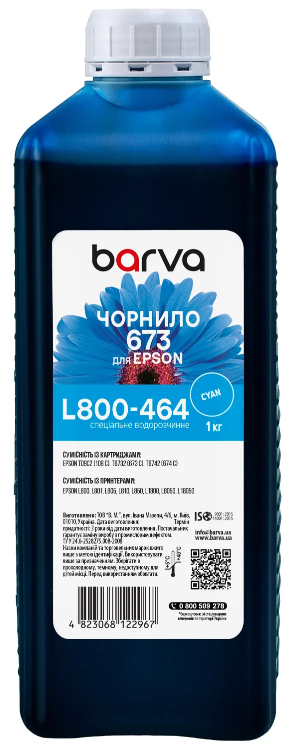 Чорнило сумісне для Epson 673 C спеціальне 1 кг, водорозчинне, блакитне Barva (L800-464) опис: