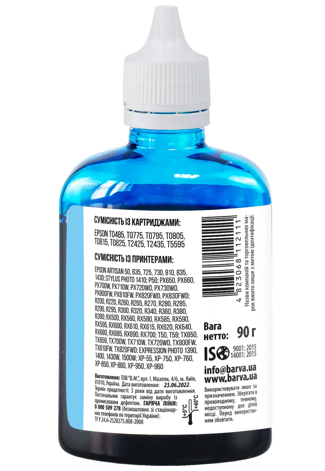 • Чорнила для принтера Epson E081-328 Barva 90 гр./100 мл розфасовані в спеціальні чорнила для зручної заправки;