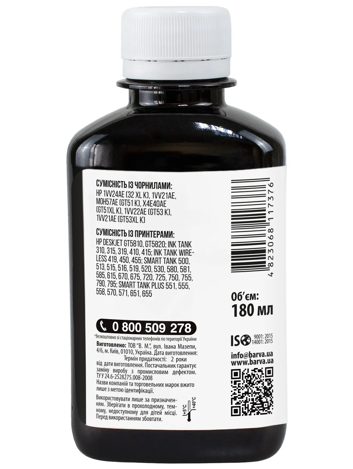 Дана фарба для принтера HP Barva має фасовку – 180 мл: