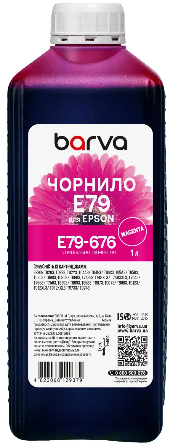 Чорнила E79-676 Barva мають офіційну гарантію від виробника – ТОВ "В.М.".