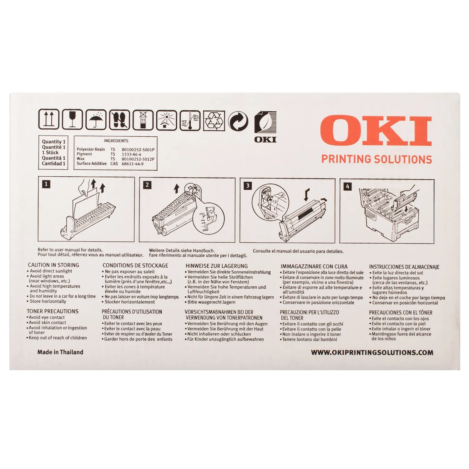 - Гарантований ресурс. Oki використовує схвалені ISO способи тестування для точного визначення заявленого ресурсу своїх оригінальних тонер-картриджів. Це означає, що ви завжди зможете надрукувати заявлену кількість сторінок. Стандартний текст (не жирний, не підкреслений, без малюнків) дає приблизно 5% заповнення. Це стандартна характеристика заповнення тонером поверхні паперу, і норми витрати тонера (ресурс картриджа) наводяться саме по ній.