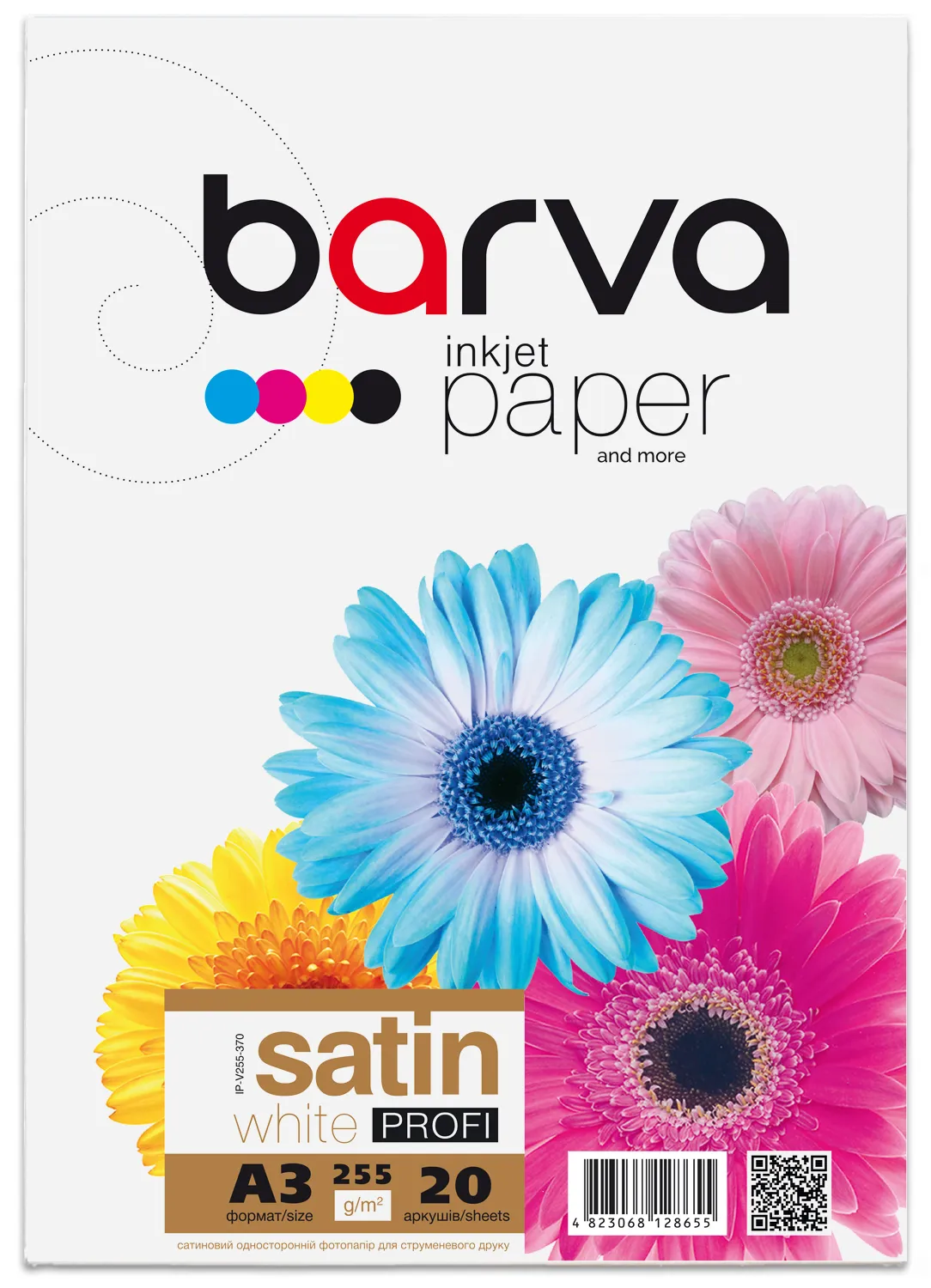 Фотопапір білий сатин 255 г/м2, А3, 20 арк Profi Barva (IP-V255-370) опис