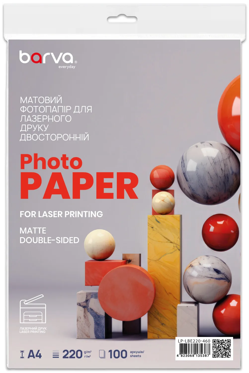 Фотопапір для лазерного друку матовий двосторонній 220 г/м2, A4, 100 арк Everyday Barva (LP-LBE220-460)