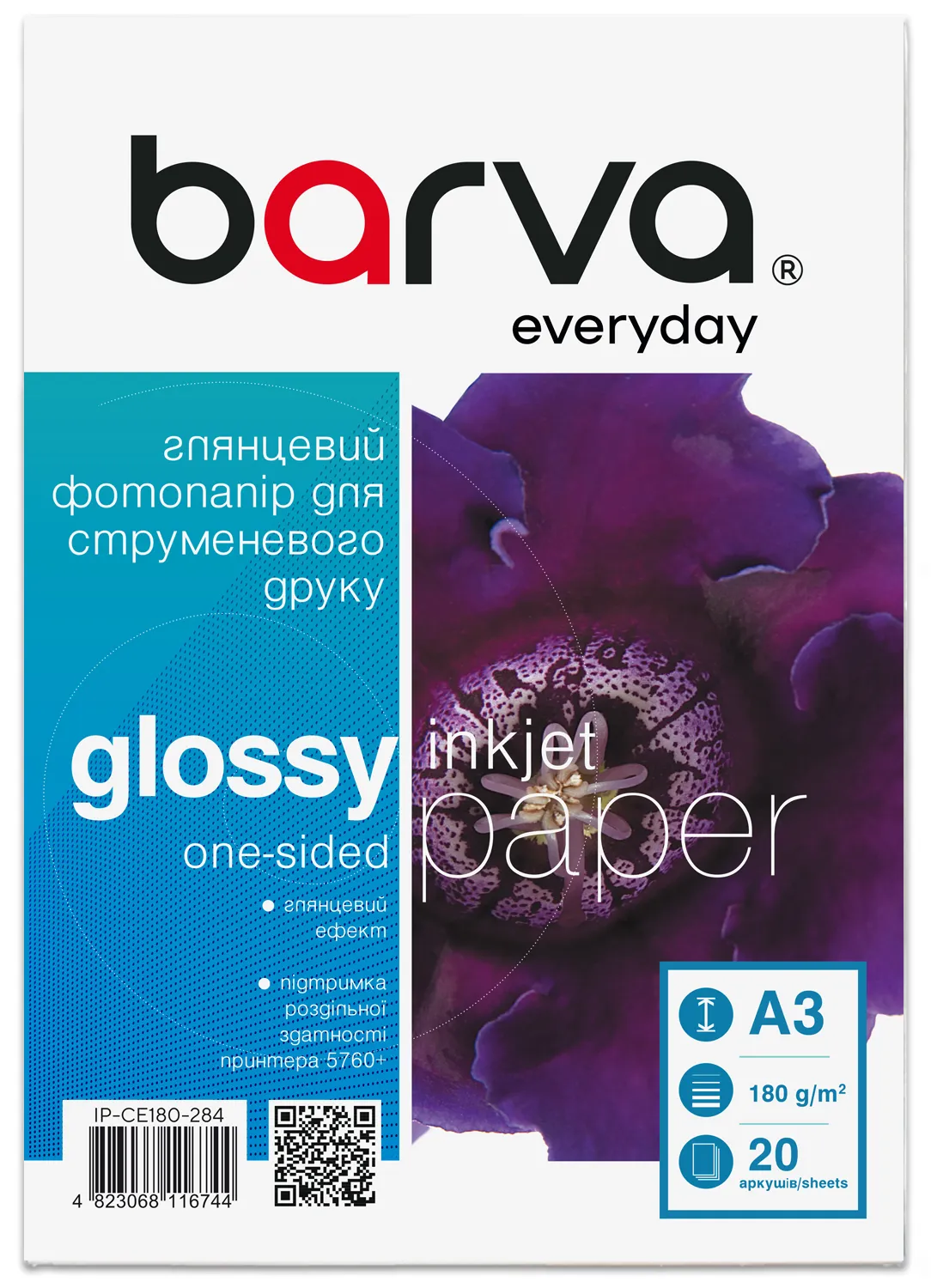 Фотопапір глянцевий 180 г/м2, A3, 20 арк Everyday Barva (IP-CE180-284) опис