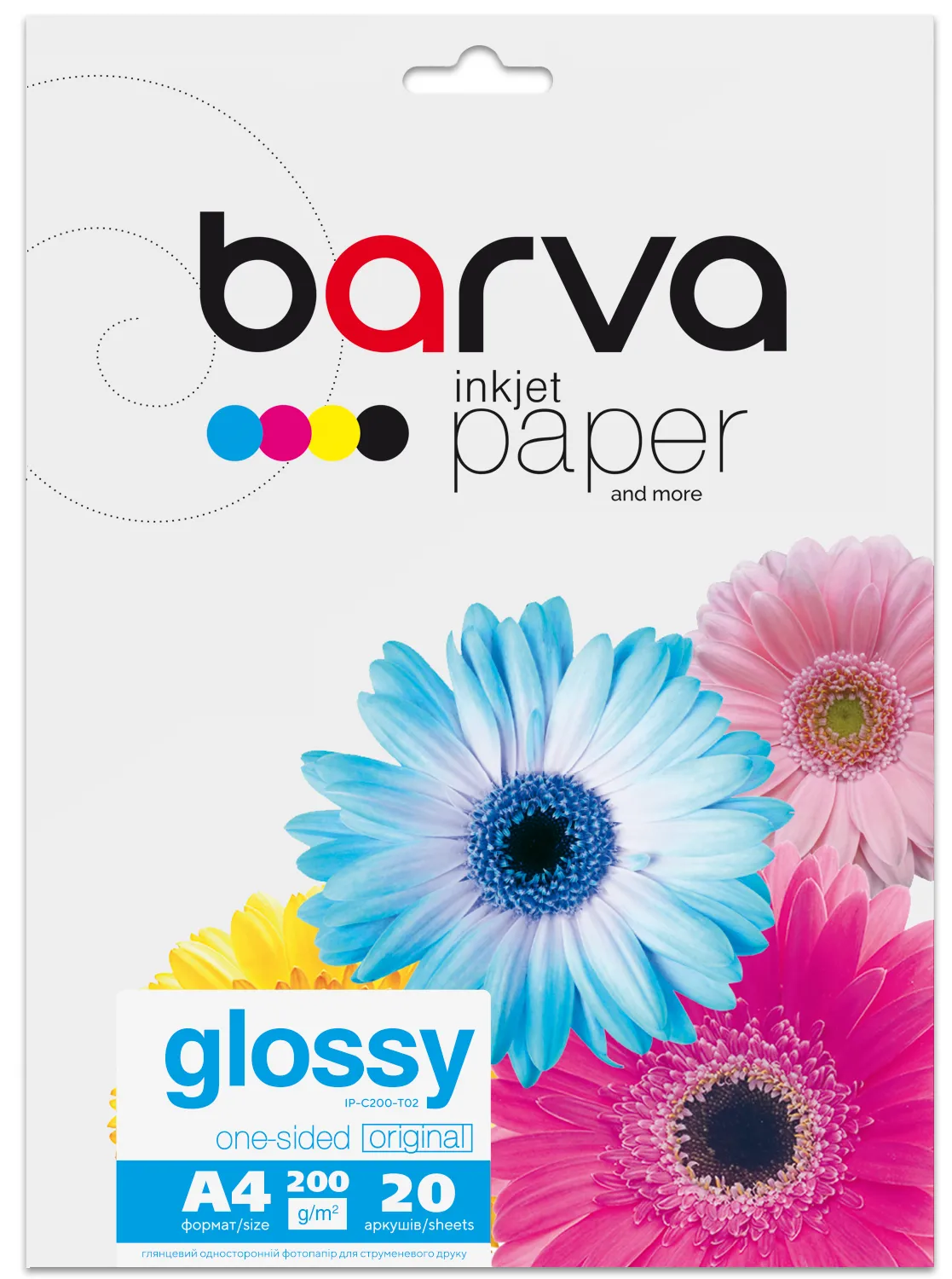 Фотопапір глянцевий 200 г/м2, А4, 20 арк Original Barva (IP-C200-T02) опис