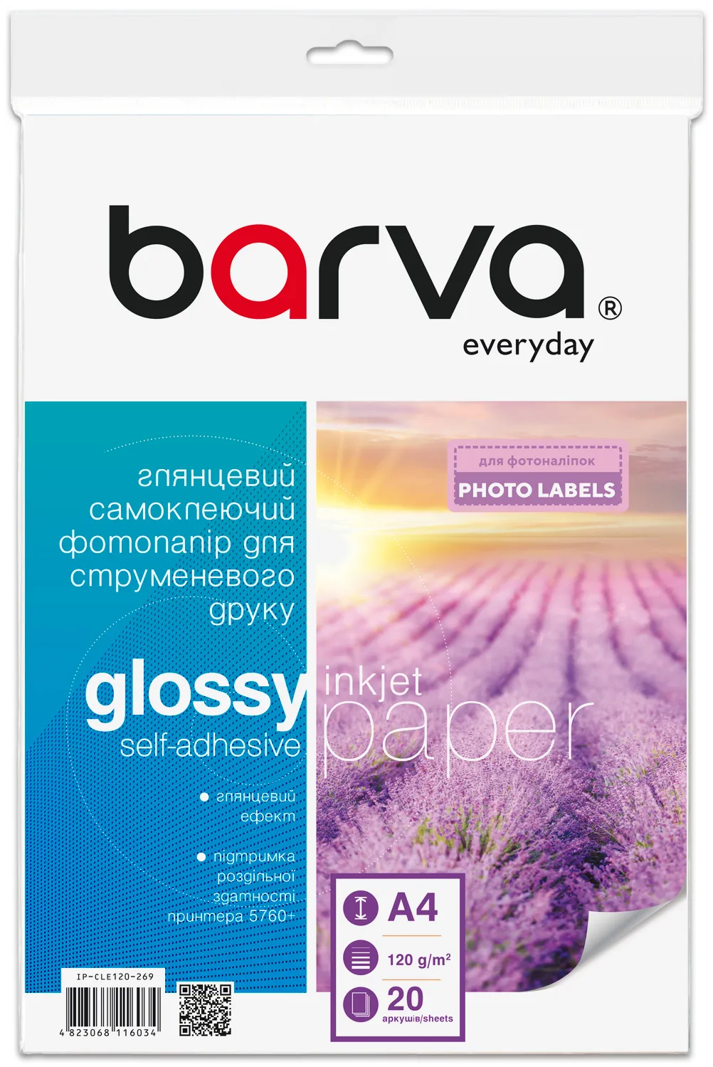 Фотопапір глянцевий самоклеючий 120 г/м2, A4, 20 арк Everyday Barva (IP-CLE120-269)