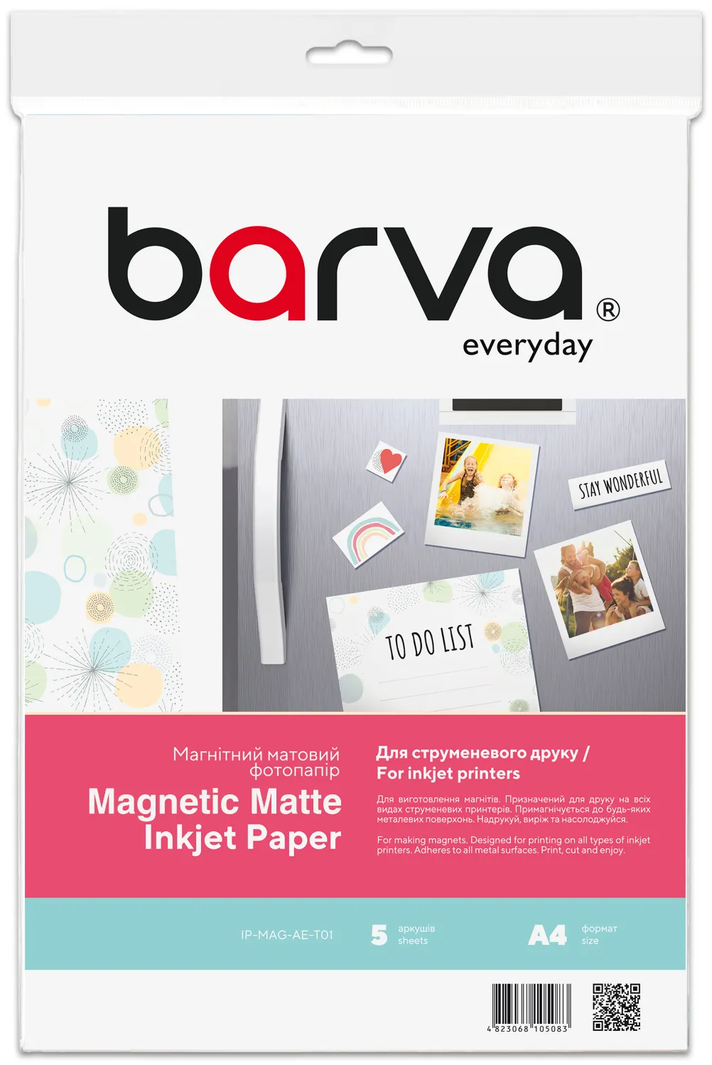 Фотопапір магнітний матовий 650 г/м2 (0.3 мм), А4, 5 арк Everyday Barva (IP-MAG-AE-T01) опис: