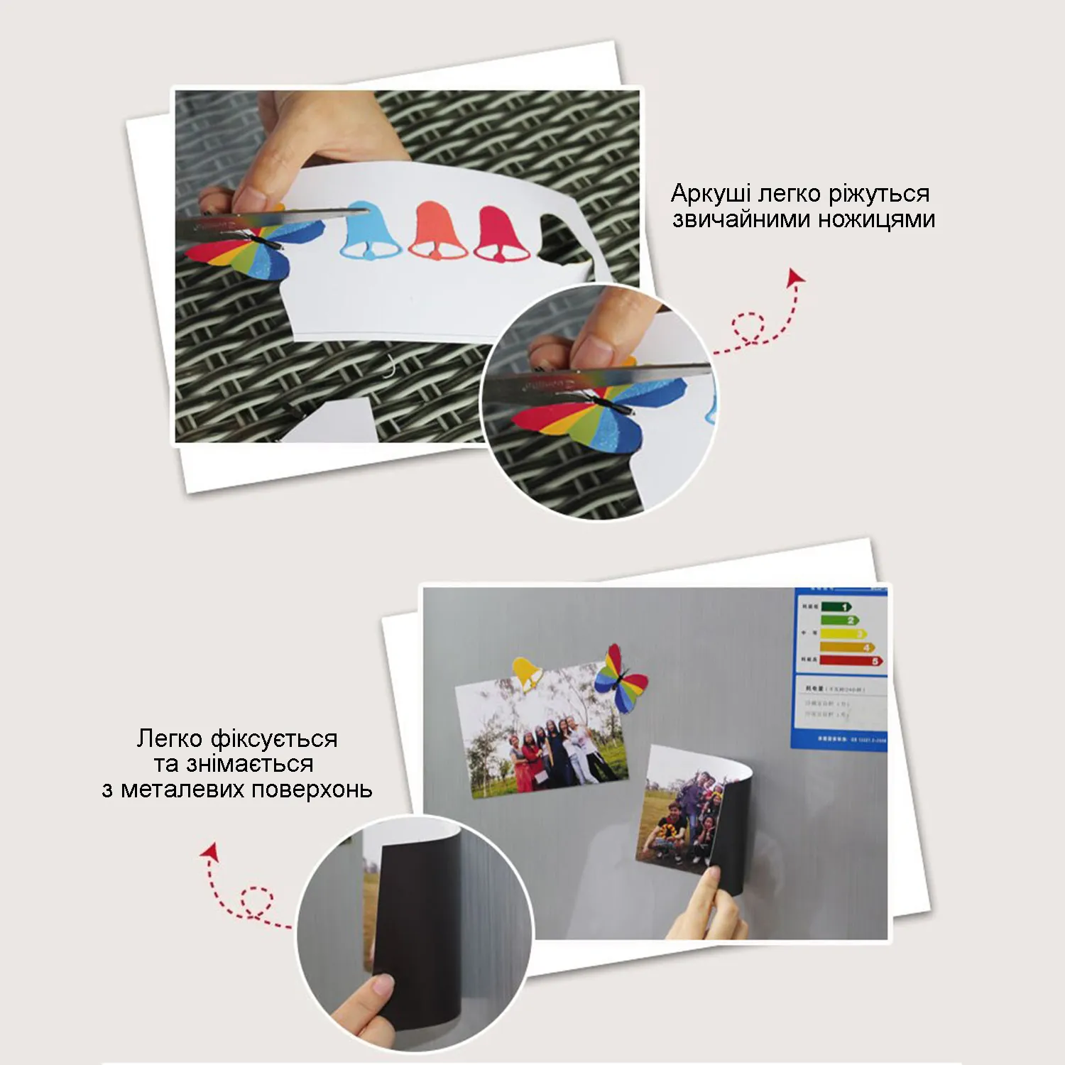 Магнітний папір може використовуватися для друку будь-яких зображень і закріплення їх на металевих поверхнях, таких як дошки для презентацій, холодильники, салон чи кузов авто, комп’ютери, вхідні металеві двері, складські стелажі та інше.