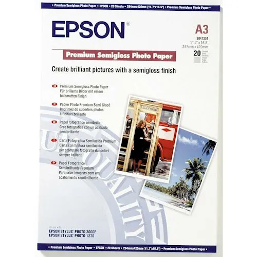 Фотопапір Premium Semigloss A3, 20 арк Epson (C13S041334)