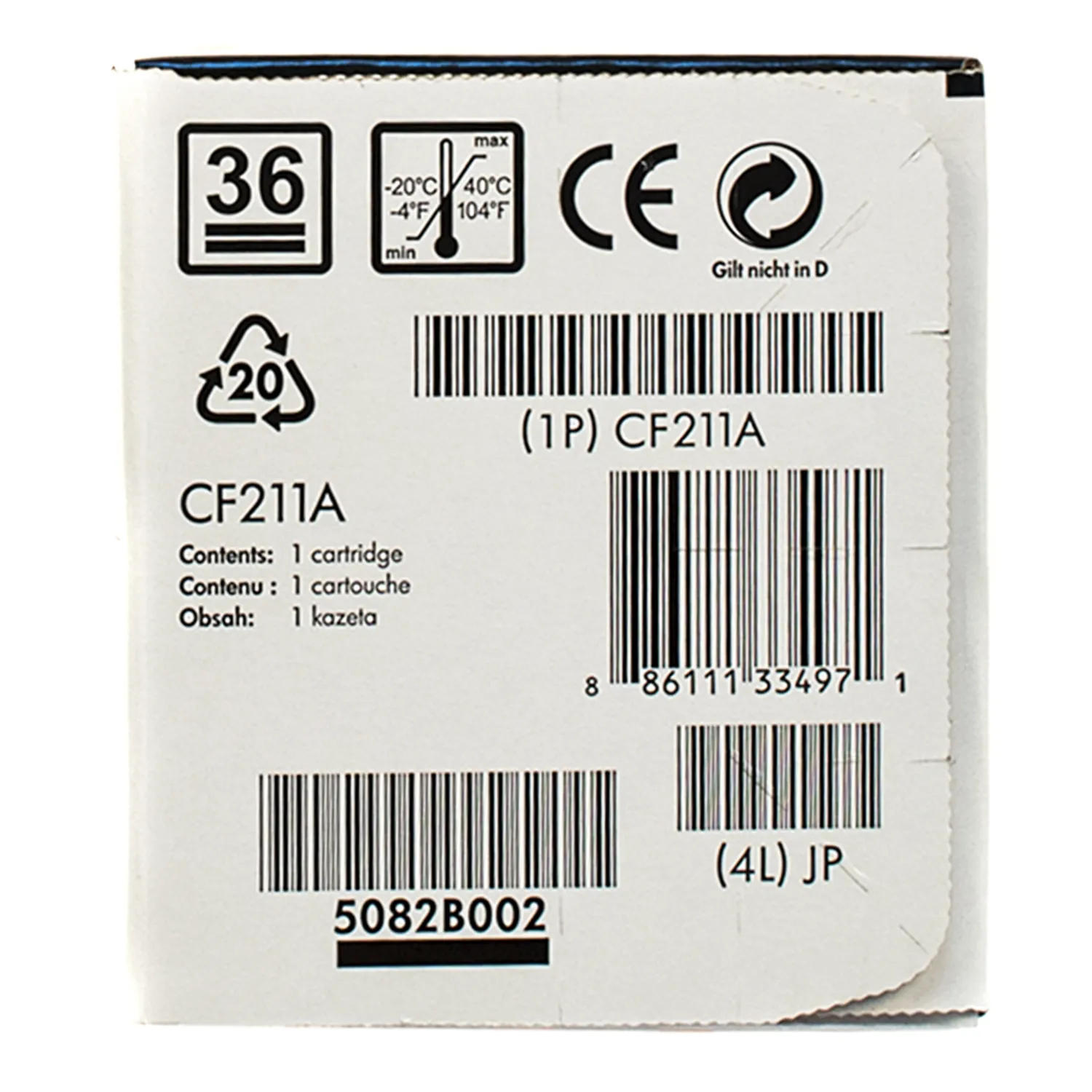 Оригінальний картридж CF211A розроблений компанією HP, яка гарантує якісний друк протягом всього ресурсу - 1800 сторінок. Картридж 131A блакитний HP (CF211A) відноситься до групи оригінальних витратних матеріалів, єдиним мінусом яких є висока вартість.