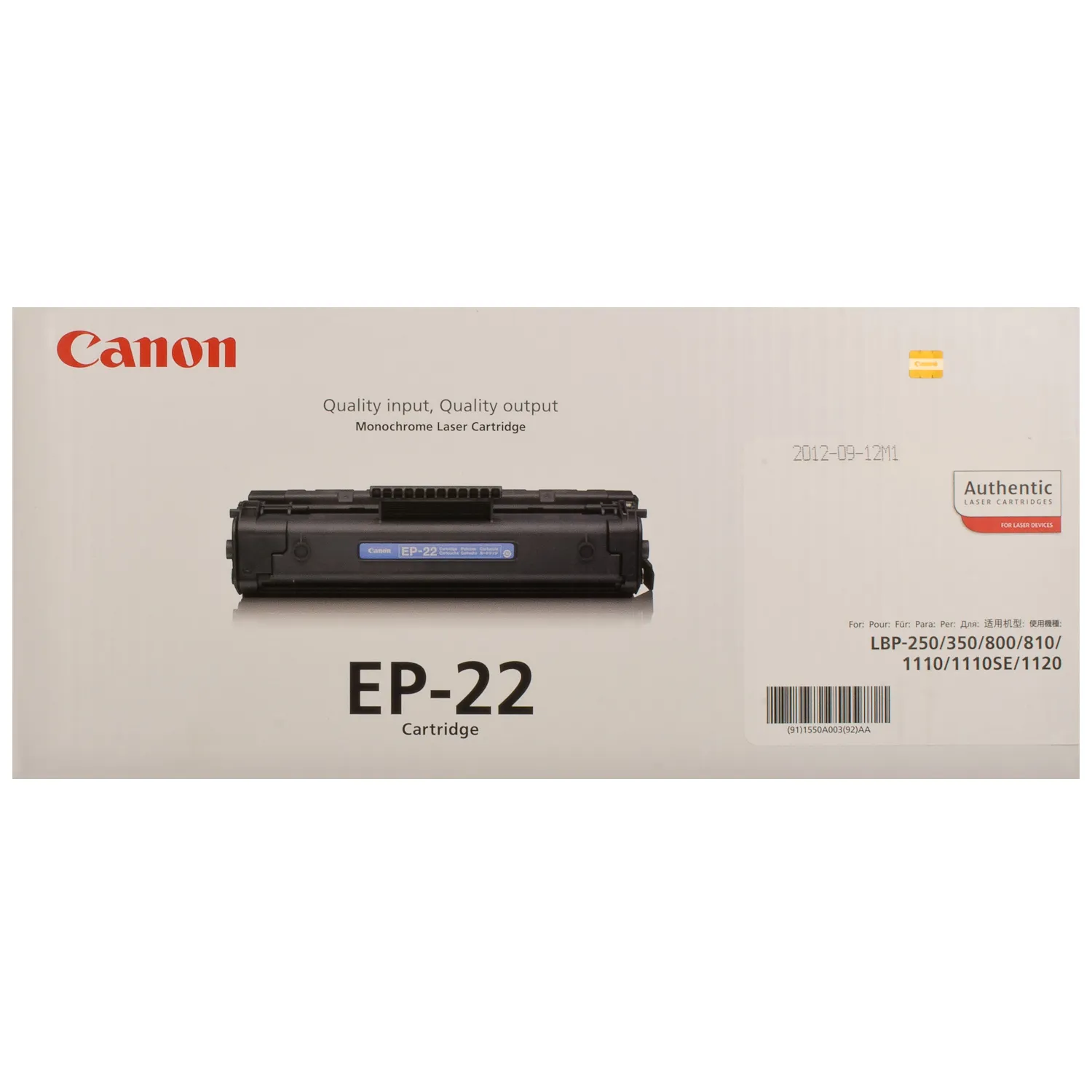 Оригінальний картридж EP-22 було розроблено компанією Canon, що є гарантією високої якості і забезпечує стабільну роботу протягом всього ресурсу – 2500 сторінок. Картридж EP-22 Canon (1550A003) відноситься до групи оригінальних витратних матеріалів, єдиним мінусом яких є висока вартість.