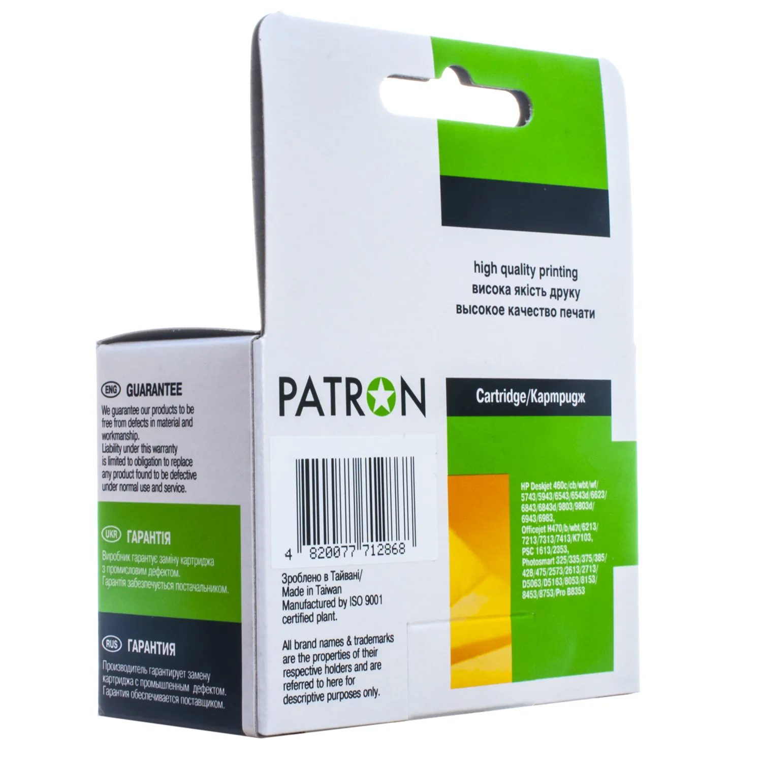 Струменеві картриджі(cartridge) Patron вже завоювали популярність серед користувачів і є прекрасною альтернативою оригінальним витратним матеріалам. Вся продукція проходить перевірку у власній лабораторії ТОВ «В.М.», завдяки чому Ви можете бути впевненими в якості продукції.