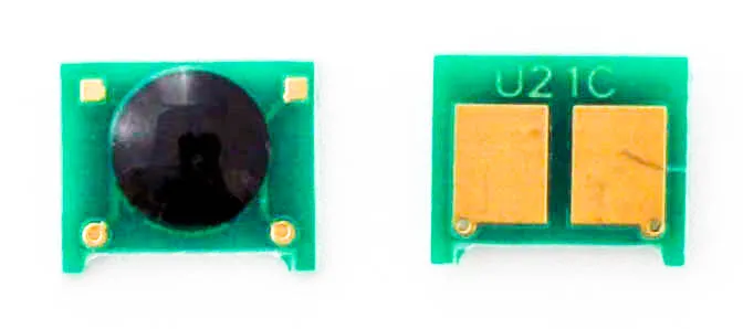 Что такое чип для картриджа? Это небольшая по размеру микросхема, в которую вшита информация о ресурсе самого картриджа, обеспечен функцией обмена данными с принтером. Проще говоря, благодаря чипу аппарат может посчитать количество отпечатанных страниц. В момент, когда счётчик страниц подошел к концу, вы увидите предупреждение о том, что картридж закончился и его необходимо заменить, даже если в бункере картриджа остался неиспользованный тонер.