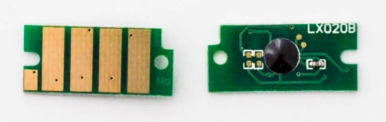 Что такое чип для картриджа? Это небольшая по размеру микросхема, в которую вшита информация о ресурсе самого картриджа, обеспечен функцией обмена данными с принтером. Проще говоря, благодаря чипу аппарат может посчитать количество отпечатанных страниц. В момент, когда счётчик страниц подошел к концу, вы увидите предупреждение о том, что картридж закончился и его необходимо заменить, даже если в бункере картриджа остался неиспользованный тонер.