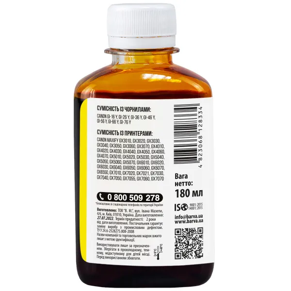 Чернила совместимые для Canon GI-46 Y специальные 180 мл, пигментные, желтые Barva (CGI46-910) - быстрая и удобная доставка