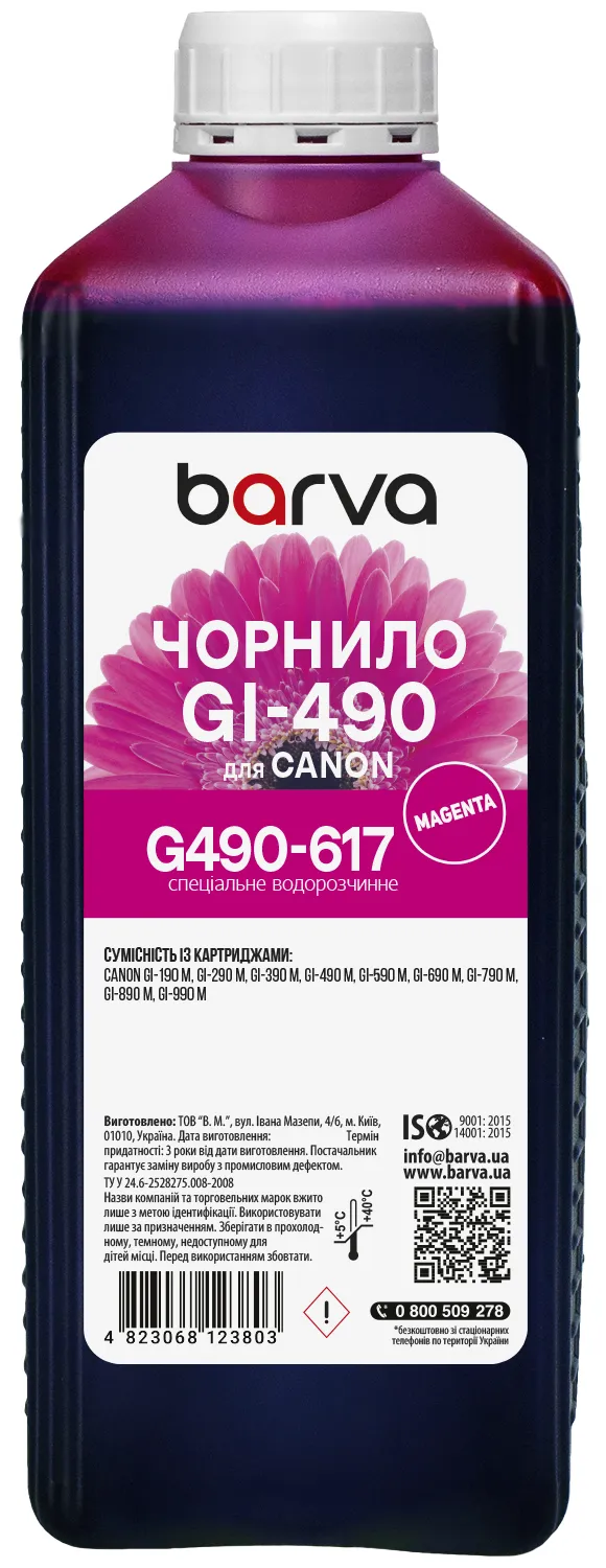 Вы можете купить Чернила для Canon GI-490 M специальные 1 л, водорастворимые, пурпурные Barva (G490-617) в нашем интернет-магазине с доставкой по Киеву и всей Украине.