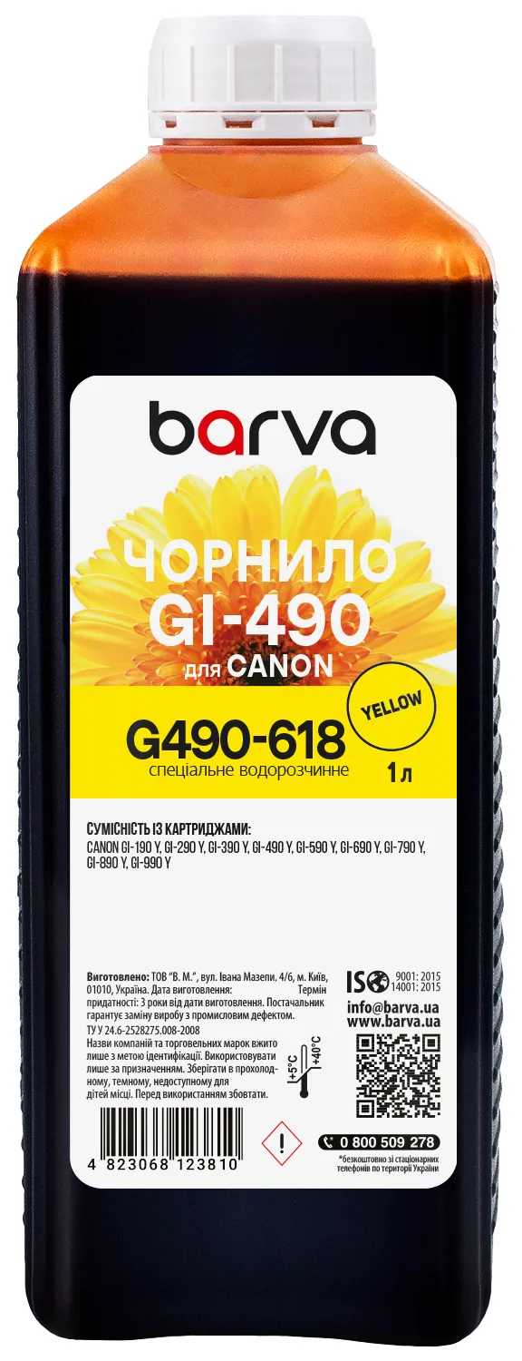 Вы можете купить Чернила для Canon GI-490 Y специальные 1 л, водорастворимые, желтые Barva (G490-618) в нашем интернет-магазине с доставкой по Киеву и всей Украине.