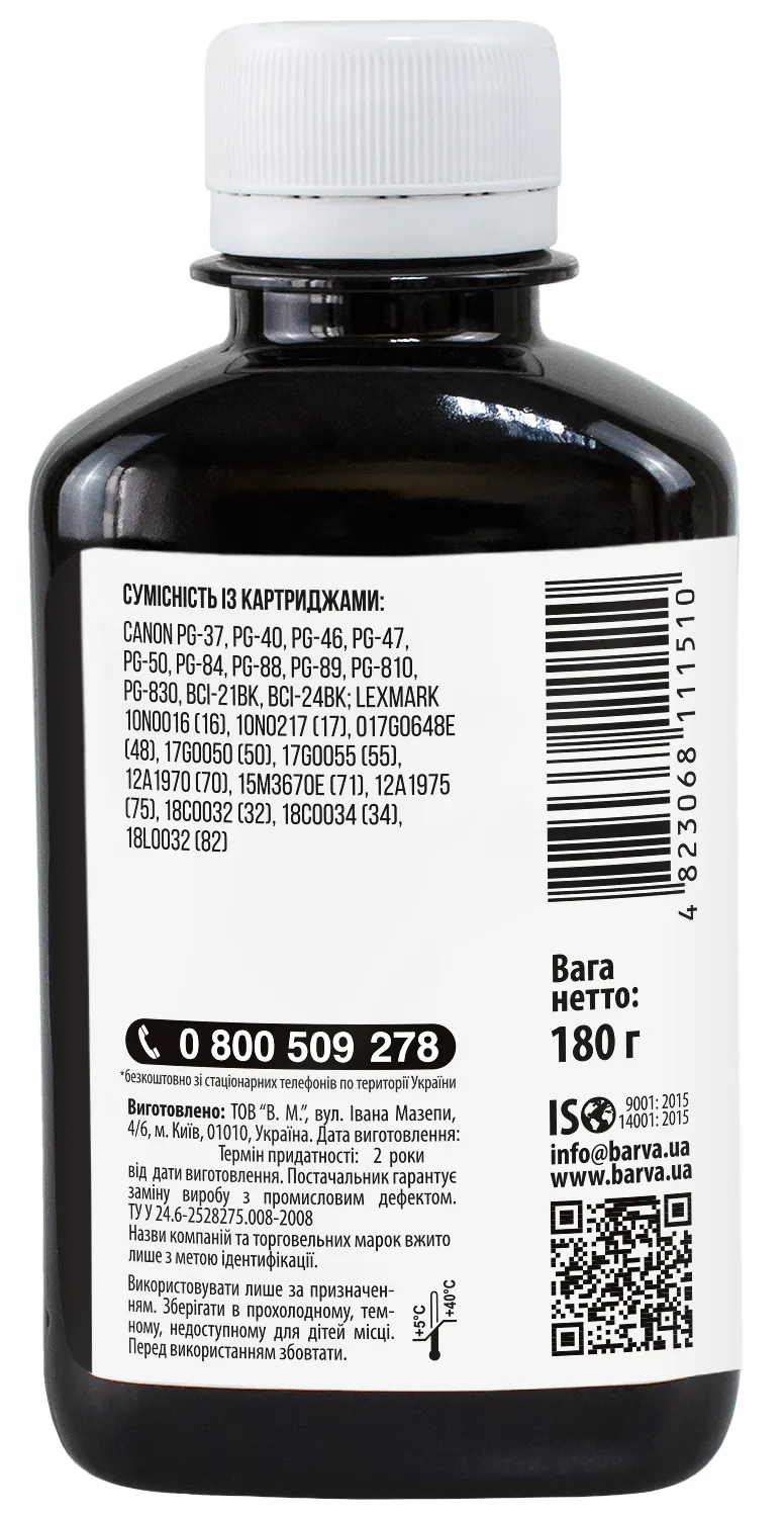 Данная краска для принтера Canon Barva имеет фасовку – 180 мл: