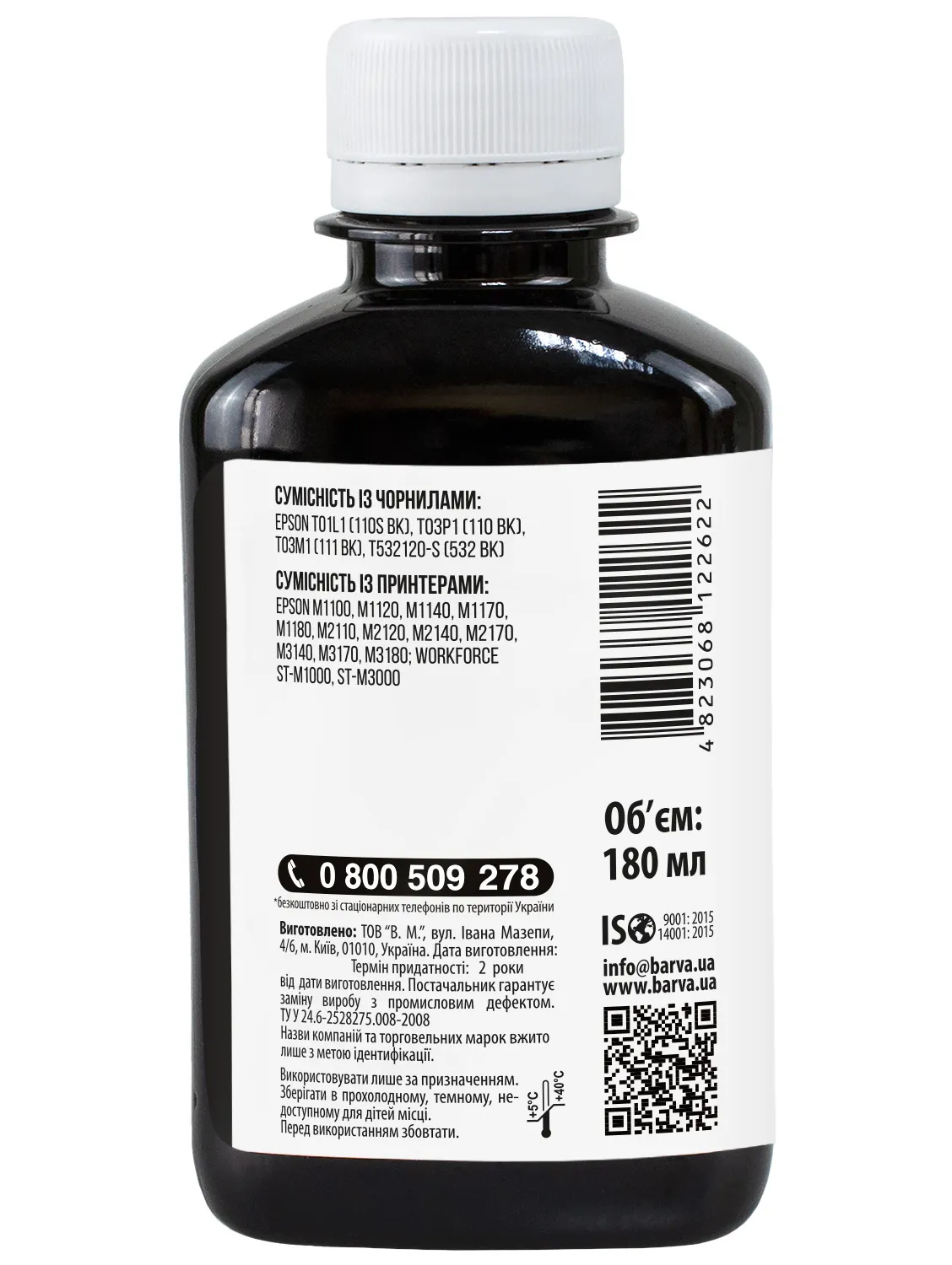 Главное отличительное качество красителей такого типа – это наличие специального вещества – пигмента. Он отвечает за окрашивание, но не растворяется в воде. Черные чернила для принтера производства Barva включают мельчайшие частички соответствующего тона. Изготавливают продукцию на территории Украины, расфасовывают во флаконы по 180 г.