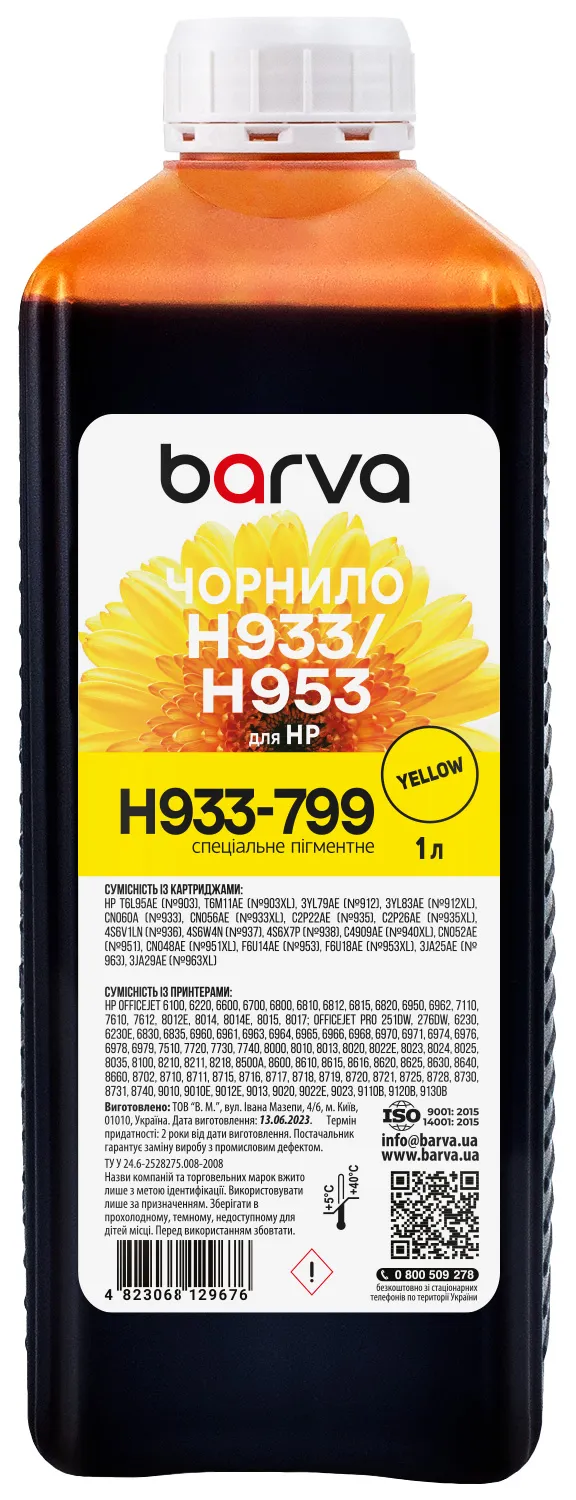 Вы можете купить Чернила для HP 933/951/953 специальные 1 л, пигментные, желтые Barva (H933-799) в нашем интернет-магазине с доставкой по Киеву и всей Украине.