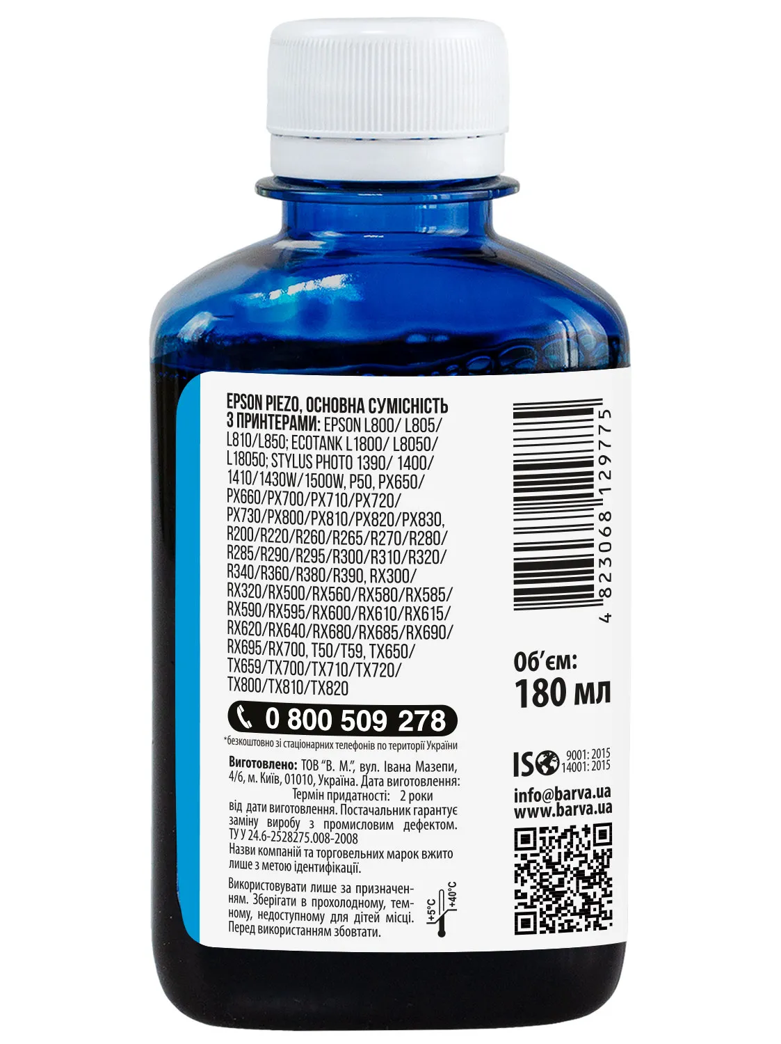 Данная краска для принтера Epson Barva имеет фасовку - 180 мл: