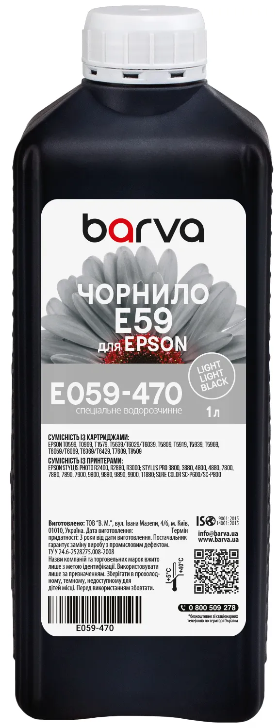 Чернила для Epson T0599/T6039/T1579 специальные 1 л, водорастворимые, светло-светло-черные Barva (E059-470) - лучший выбор на сайте patronservice.ua