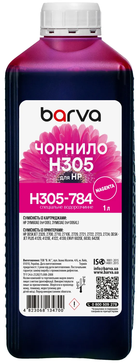 Многие из нас слышали, что в отличие от лазерной техники, которая формирует изображение с помощью тонера, струйная техника использует для печати специальные чернила (краски для принтеров). Чернила для HP 305 специальные 1 л, водорастворимые, пурпурные Barva (H305-784) используются для заправки струйных картриджей, ПЗК или СНПЧ.Чернила H305-784 Barva имеют официальную гарантию от производителя – ООО "В.М.".
