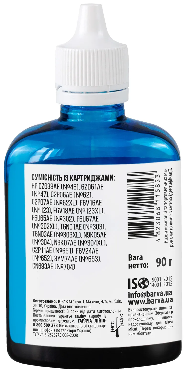 Чернила для HP 46/123/651/652 специальные 90 г, водорастворимые, голубые Barva (H652-532) - лучший выбор на сайте patronservice.ua