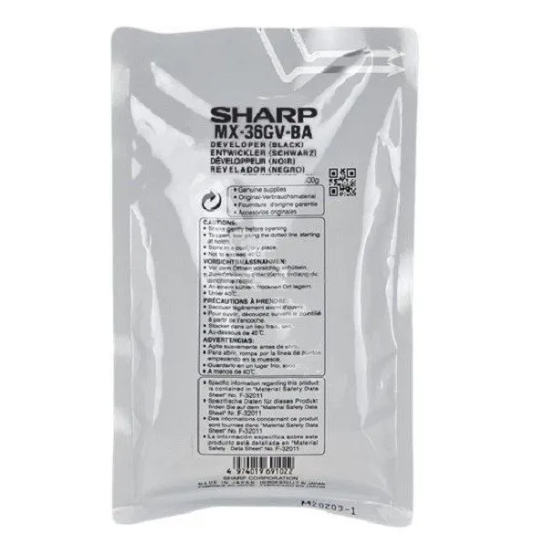 Девелопер используется в некоторых моделях печатающих устройств, которые имеют двухкомпонентный вид блока проявки. С помощью девелопера осуществляется перенос тонера к фотобарабану. Девелопер Sharp (MX36GVBA) подходит для устройств торговой марки Sharp, которые указаны в списке совместимости.