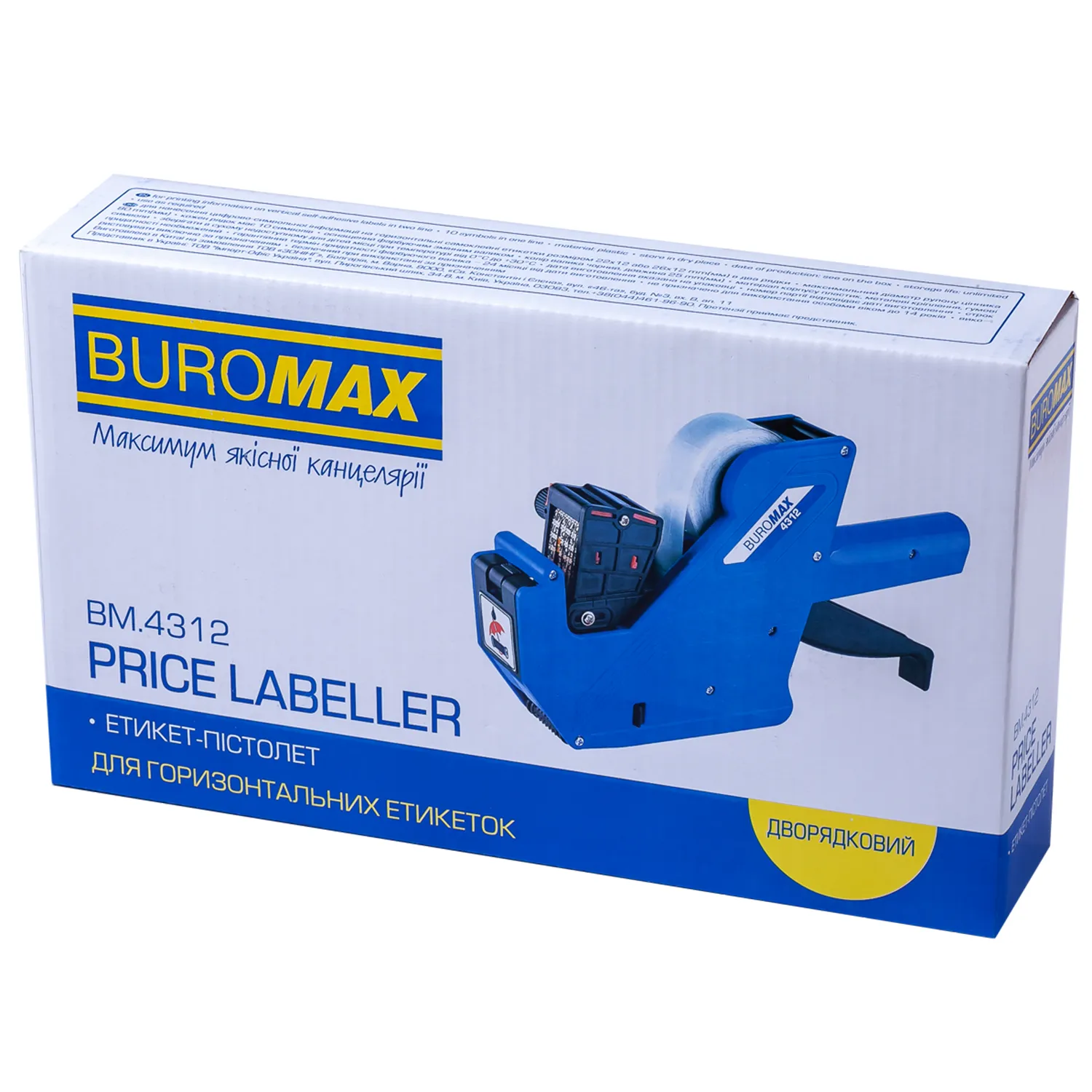 Этикет-пистолет двухстрочный, горизонтальный, синий Buromax (BM.4312) - гарантия качества