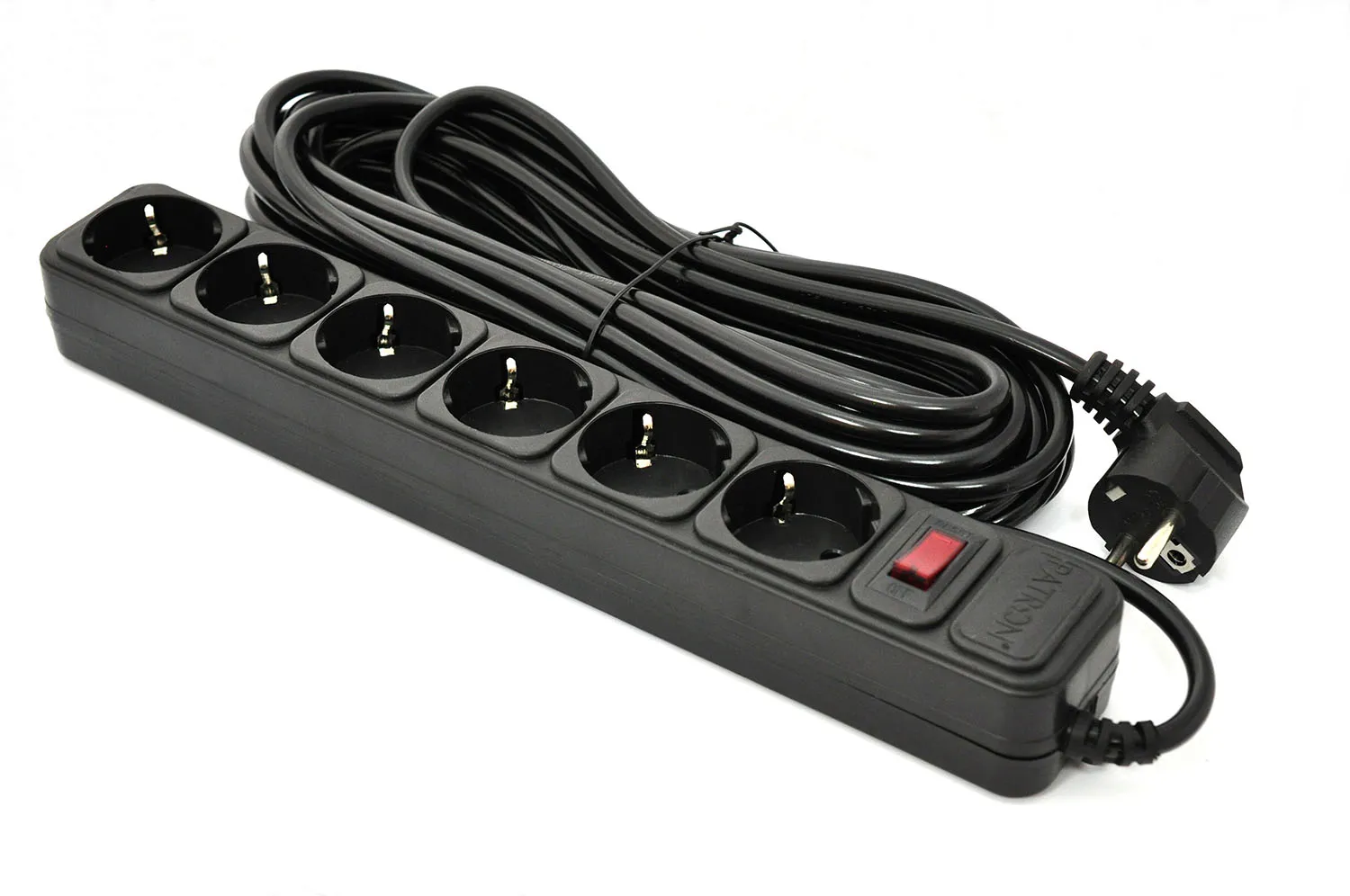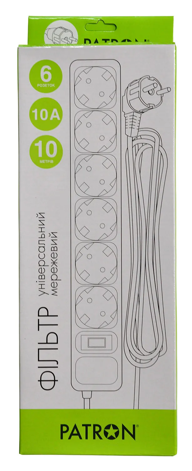 Фильтр сетевой 6 розеток, 10 м, черный, 3*1мм2 Patron (SP-10610)
