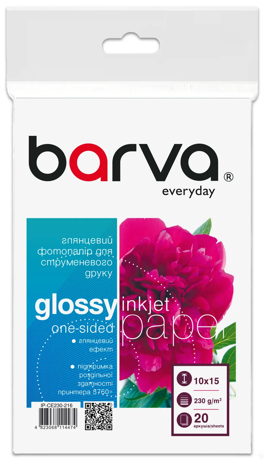 Фотобумага глянцевая 230 г/м2, 10x15 см, 20 л Everyday Barva (IP-CE230-216) - покупайте с гарантией