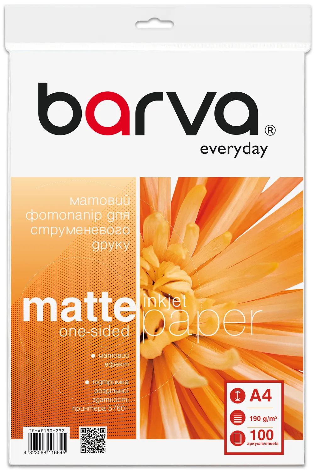 Фотобумага матовая 190 г/м2, A4, 100 л Everyday Barva (IP-AE190-292) - заказывайте на сайте patronservice.ua