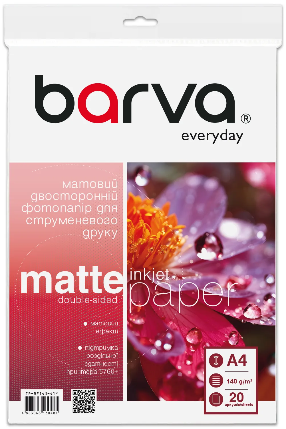 Фотобумага матовая двусторонняя 140 г/м2, A4, 20 л Everyday Barva (IP-BE140-412) описание