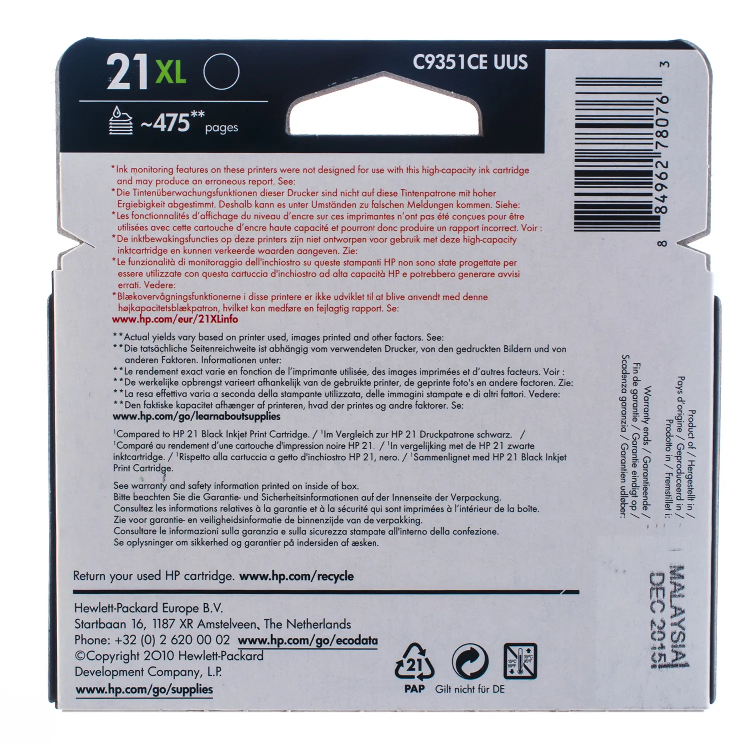 Картридж №21XL черный HP (C9351CE) описание: