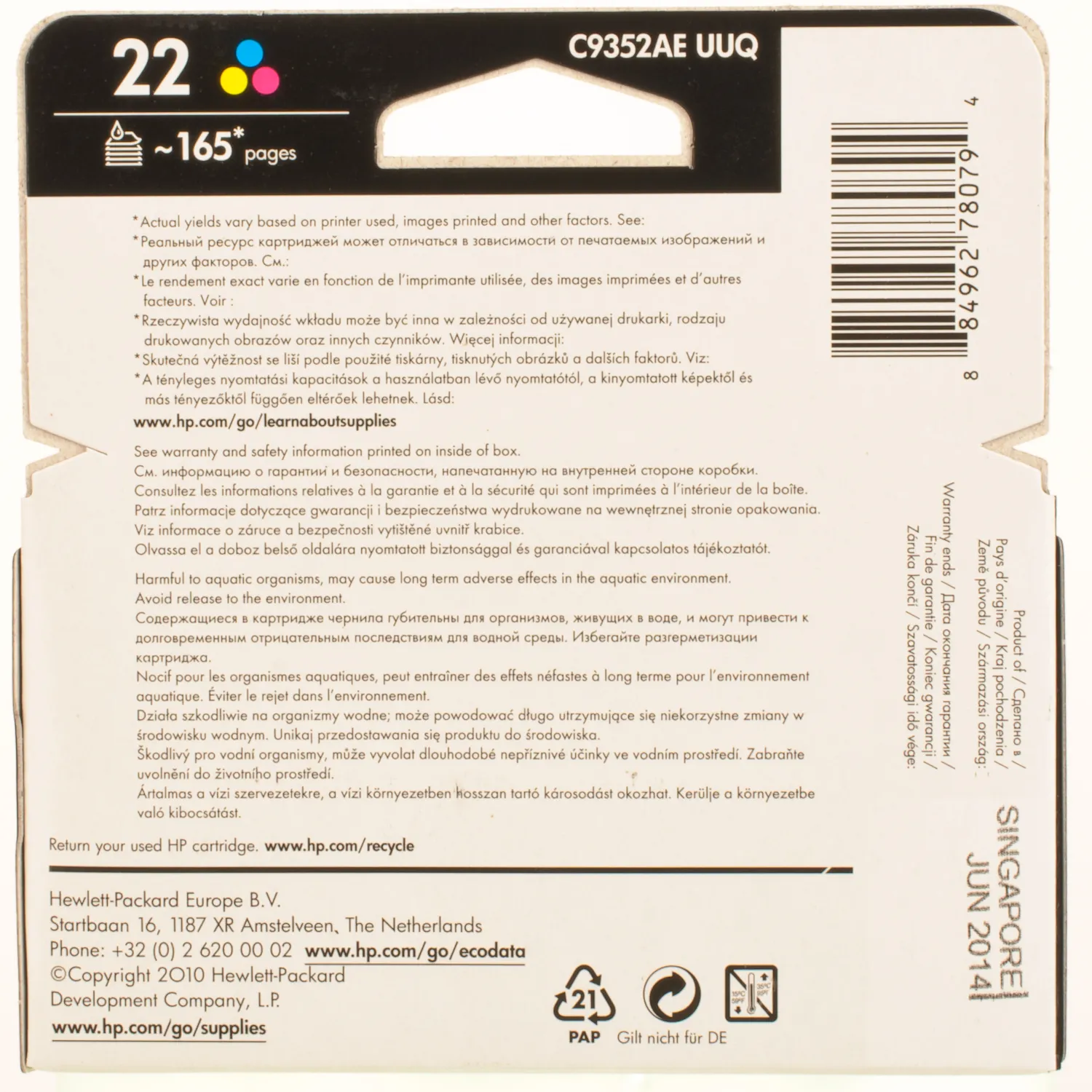 Картридж №22 цветной HP (C9352AE) описание: