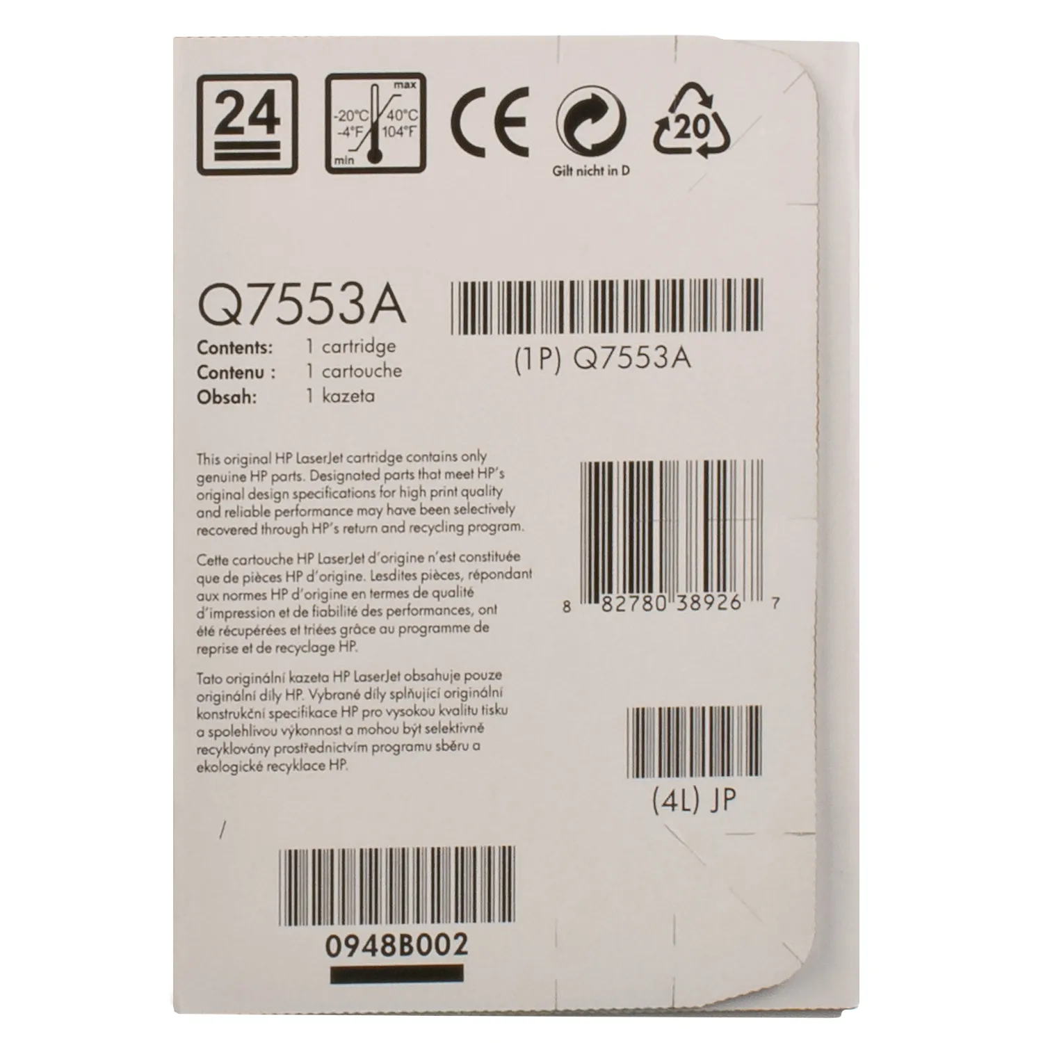 Оригинальный картридж Q7553A, произведен компанией HP, которая гарантирует качественную печать на протяжении всего ресурса - 3000 страниц. Картридж 53A черный HP (Q7553A) относится к группе оригинальных расходных материалов, единственным минусом которых является высокая стоимость.