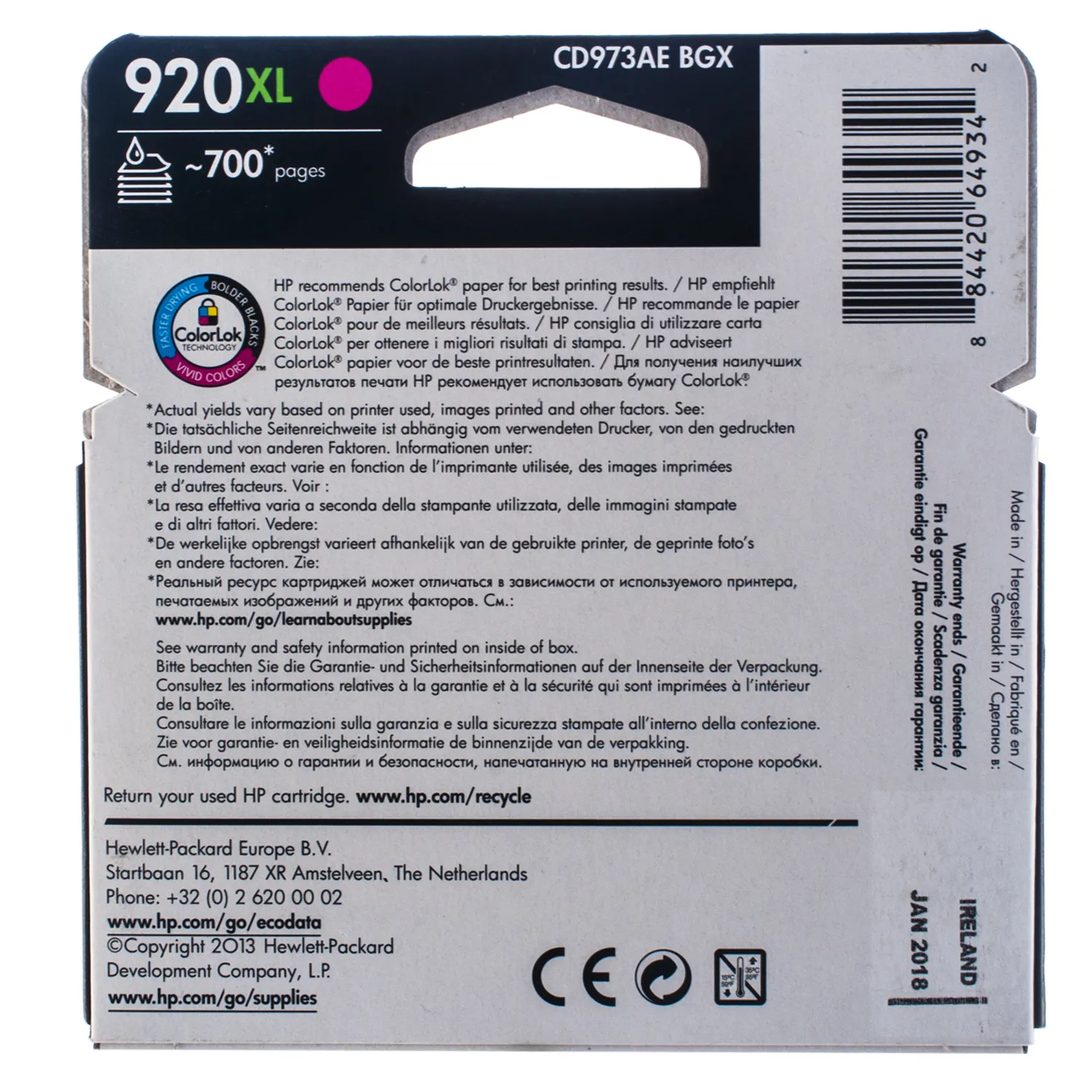 Картридж №920XL 700 стр, пурпурный HP (CD973AE) - лучшие товары для вашего принтера