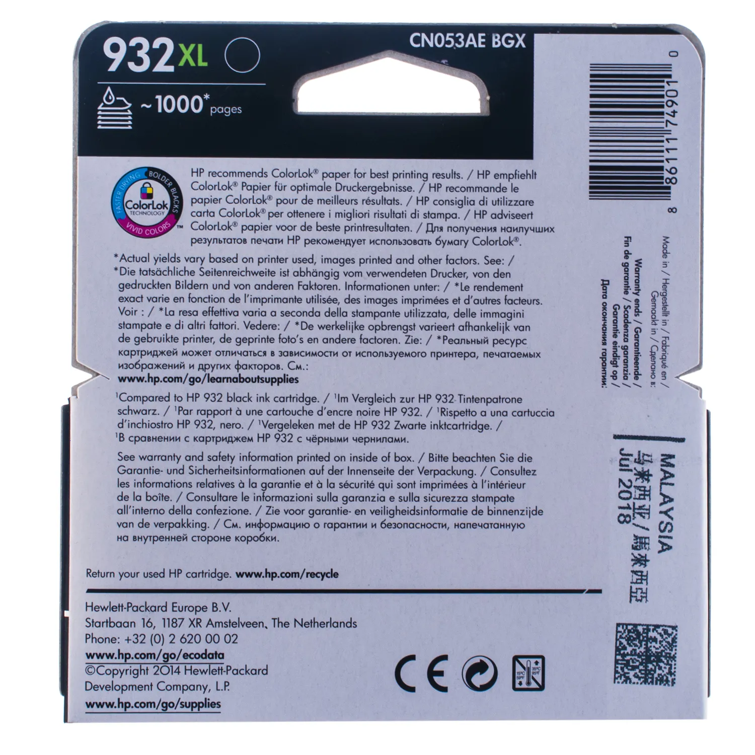 Картридж №932XL 1000 стр, черный HP (CN053AE) описание: