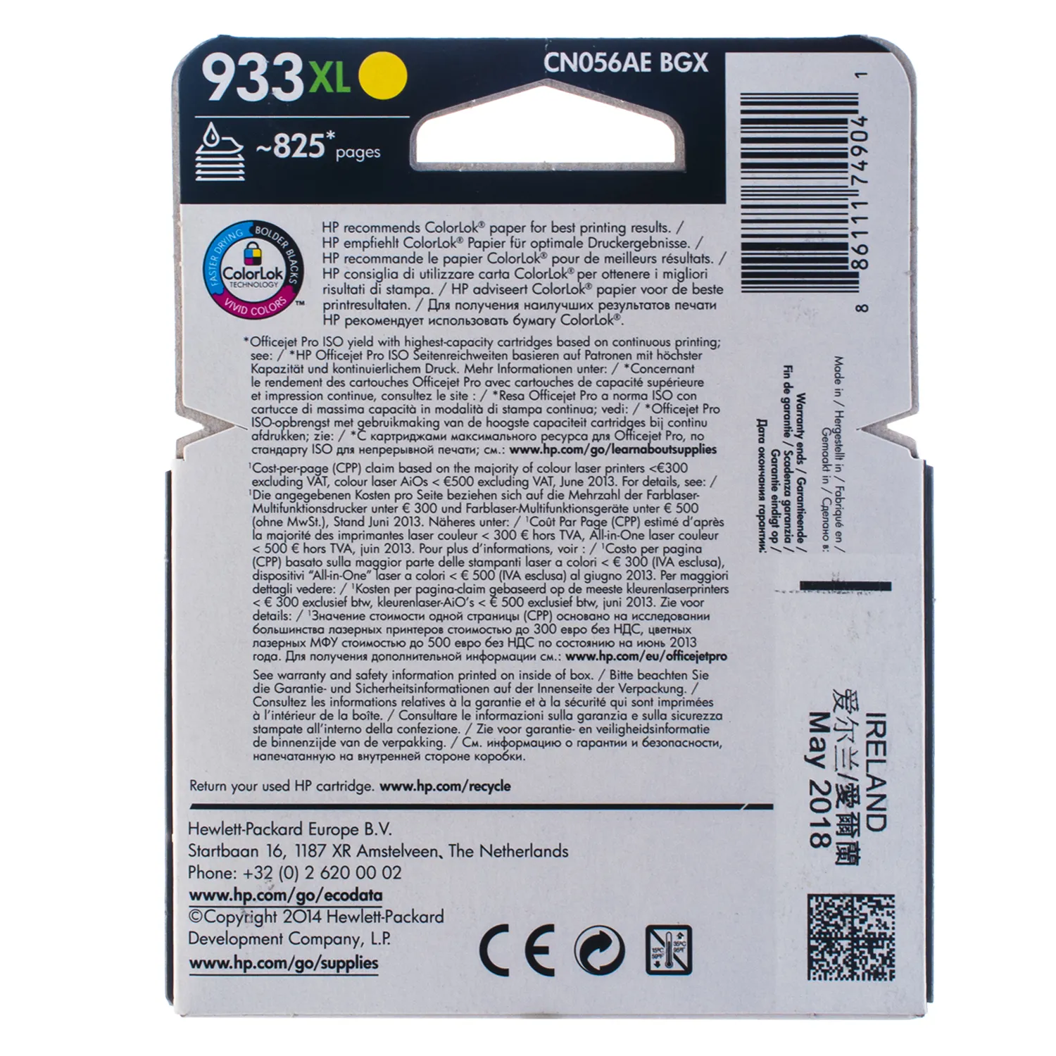 Картридж №933XL 825 стр, желтый HP (CN056AE) описание:
