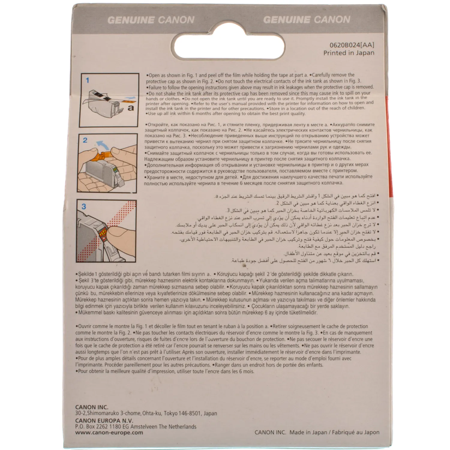 Некоторые виды пластиковой упаковки мультикомплектов могут не иметь голограммы, в таком случае необходимо обратить внимание на изображение логотипа Canon, оно не должно быть размытым или нечетким и соответствовать изображению на официальном сайте ТМ Canon.