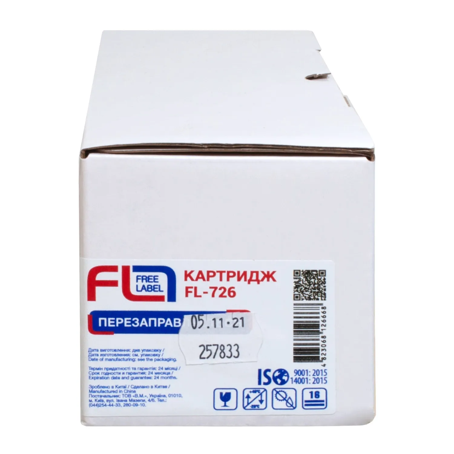 Картридж совместимый Canon 726 Free Label (FL-726) имеет гарантию 1 год исправной работы картриджа и мы произведем замену продукции с заводским дефектом.